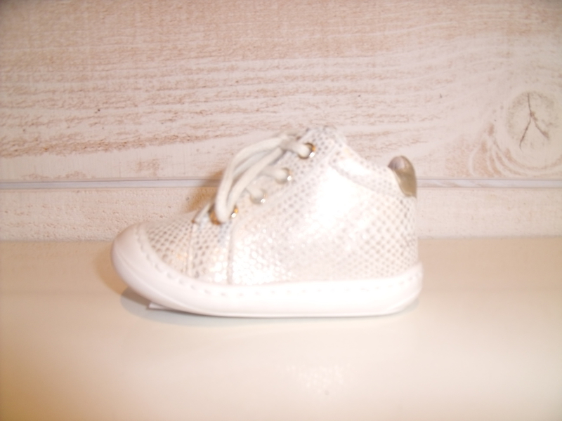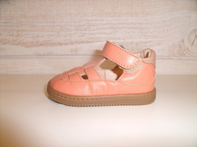 Chaussures en cuir avec une semelle adaptée aux pieds des enfants et un contrefort à l'arrièrre de la chaussure pour le maintien du pied de bébé.